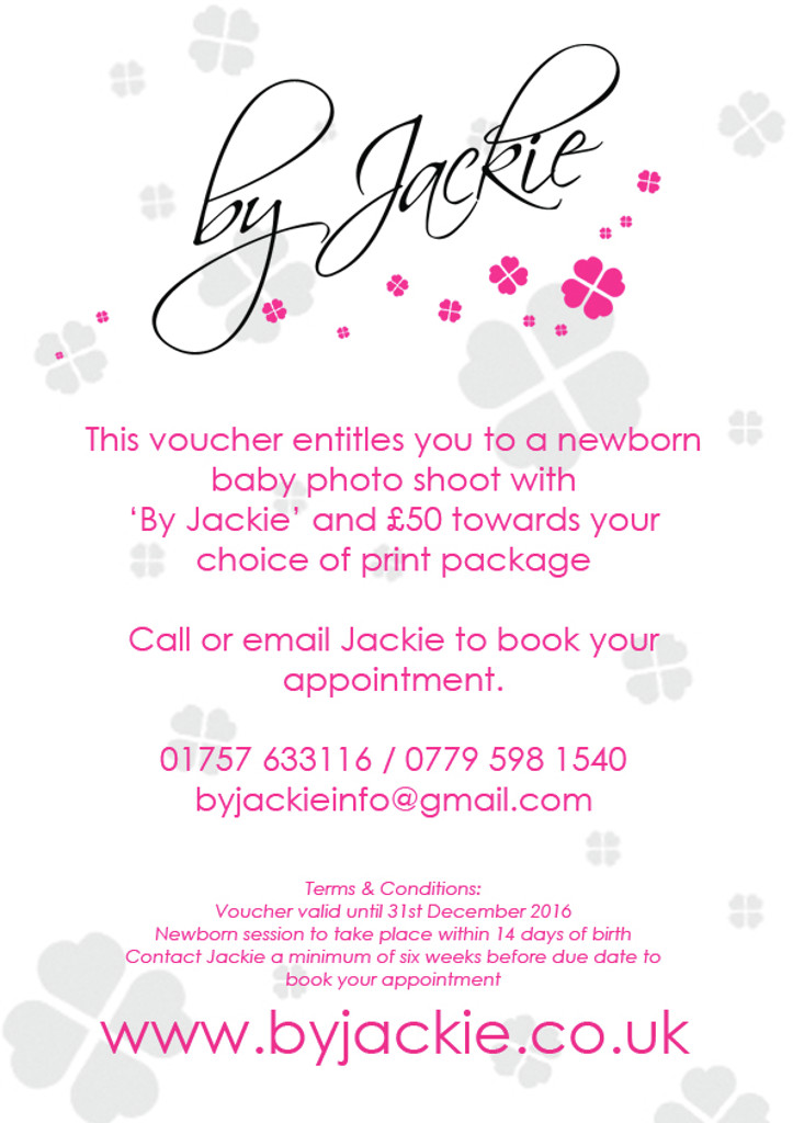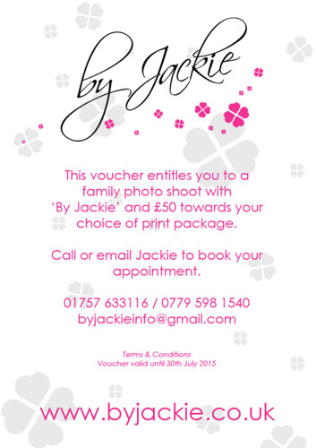 The perfect last minute Christmas gift - a family photoshoot with 'By Jackie' and £50 towards the recipient's choice of printed product package (excludes DVD only package). Download and print your voucher ready to gift. Please note, proof of purchase, i.e. email/PayPal receipt, must be provided with the voucher upon redemption.